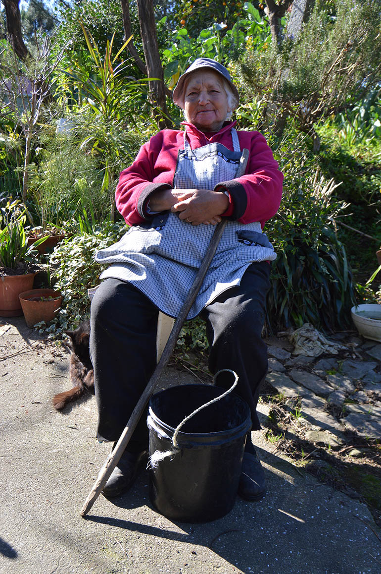 Ali perto o seu cão refugiava-se à sombra, de nome “Max” como o cão policia da serie televisiva, mas este aparentava má cara a dona disse que estava doente. Tem três filhos, um deles na América que ali passam frequentemente. Tem seis gatos e um cão, disse que às vezes estão todos à sua volta, o que não era o caso naquele dia.