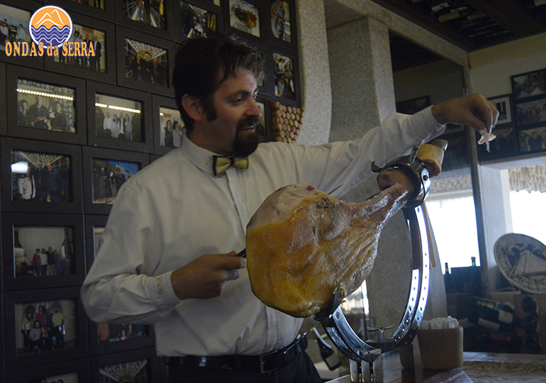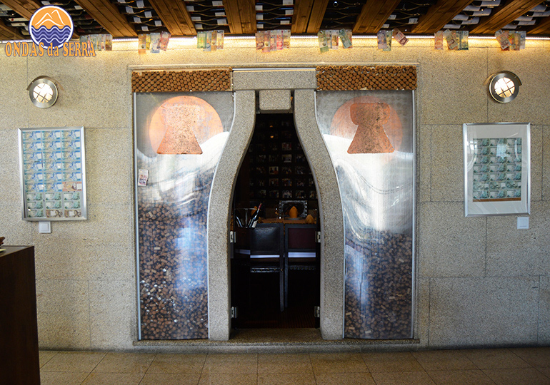 O hall de entrada deixa descobrir produtos regionais, como o queijo, o presunto e os enchidos, acompanhados por espumante. A abertura de uma nova garrafa é sempre um momento de celebração, marcada pelo ritual de fazer pontaria a um gongo.