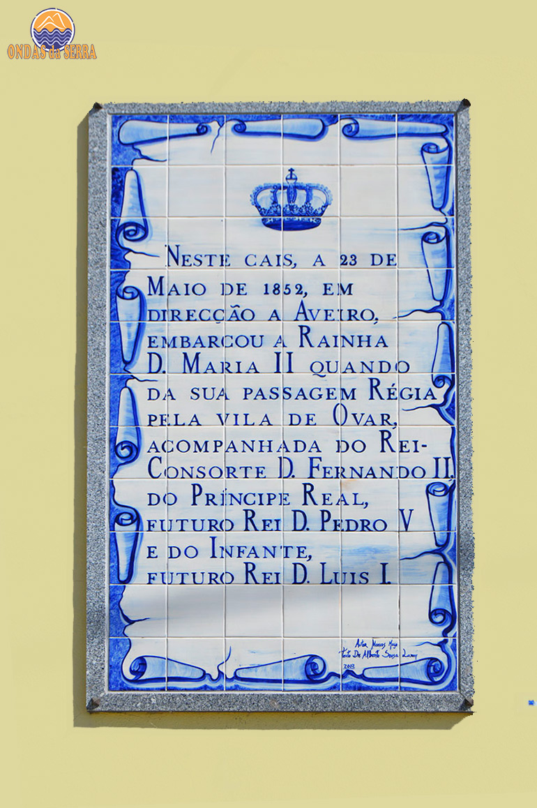 "Neste Cais, a 23 de maio de 1852, em direção a Aveiro, embarcou a Rainha D. Maria II, quando da sua passagem régia pela Vila de Ovar, acompanhada do Rei-Consorte D. Fernando II, do Príncipe Real, futuro Rei D. Pedro V e do Infante futuro Rei D. Luís I."