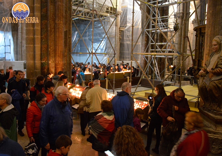 Fomos bem cedo levantar à Oficina do Peregrino a Compostela, como fomos dos primeiros ofereceram-nos um bilhete para as 19h00 ir visitar o magnifico Pórtico da Gloria, do Mestre Mateus. Fomos depois à catedral rezar, acender umas velinhas, pedir graças ao Santo por nós, pelos nossos familiares e amigos. Aguardamos pacientes na fila para lhe dar um abraço, como manda a tradição.
